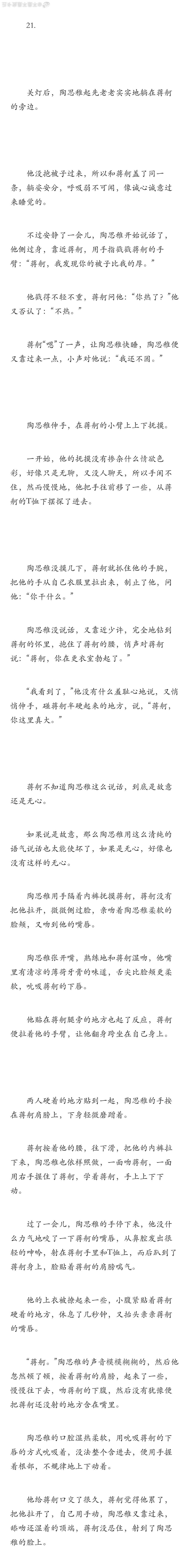蒋舸不知道自己在想什么,可能是因为见面太少,也可能是因为陶思稚总是似是而非,让他感到压抑和头脑发热,他把陶思稚的腿又分开了一些,问陶思稚:“思稚,可以吗?”