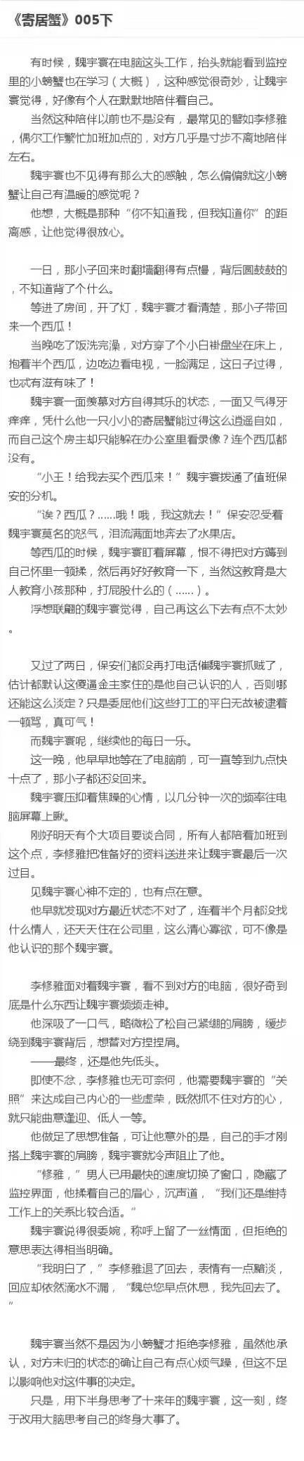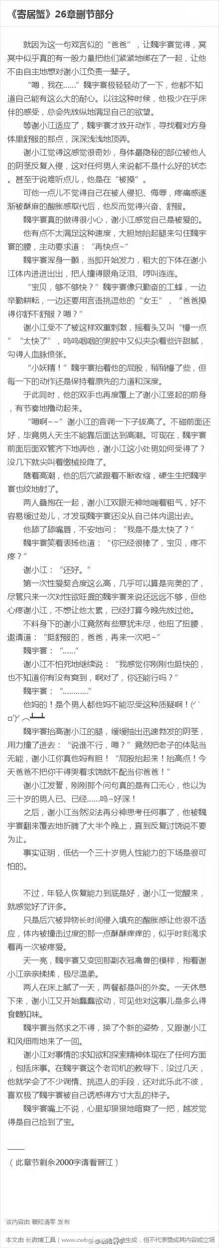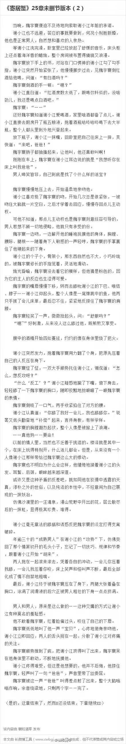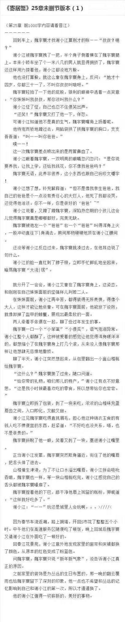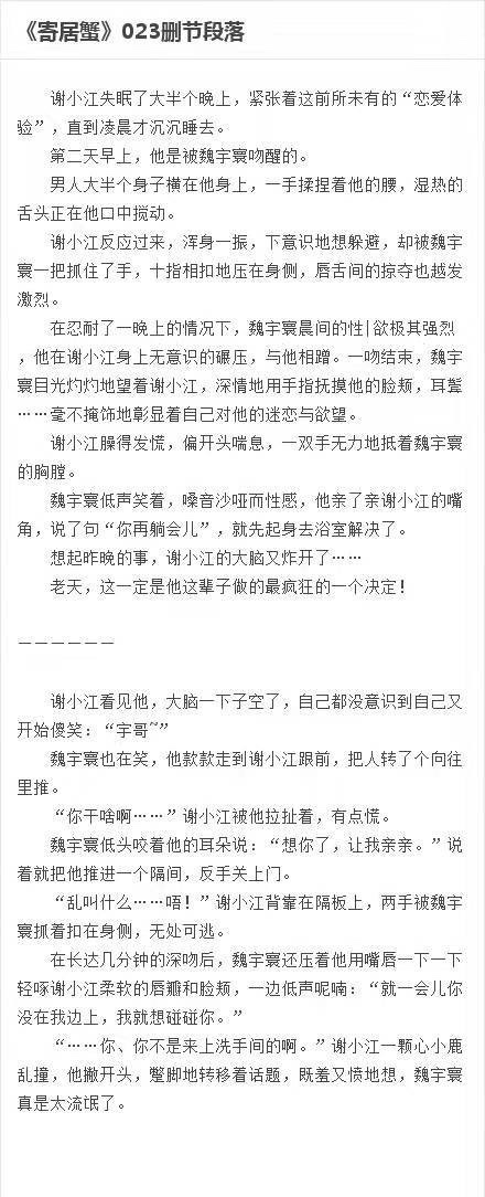 声明:小说《寄居蟹》首发晋江,本页仅整理及分享删减片段,作品版权归作者羲和清零所有。任何问题都可以微博联系@一只小圆球球,谢谢~